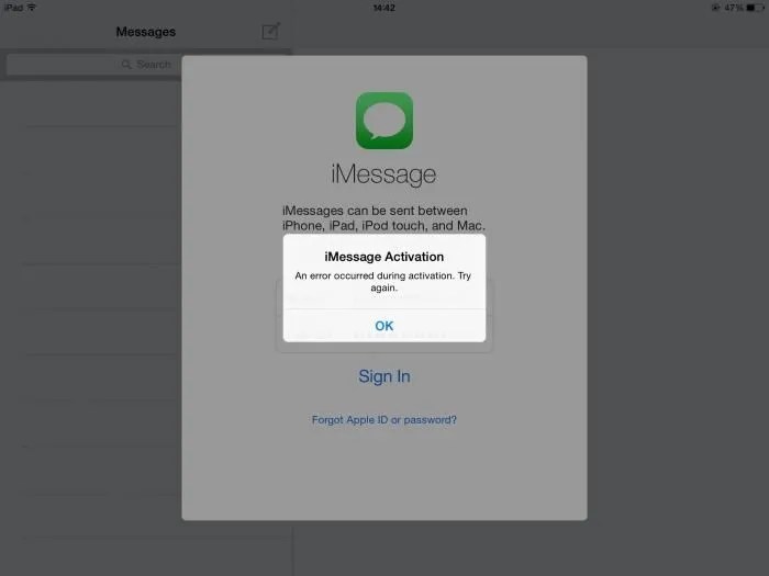 Could Not Sign In To Imessage. An Error Occurred During Activation - An error occurred during activation;. An error occurred during activation. Could not sign in, please check your network connection. Remember to enable your apple id for messages. Could not sign in, please check your network . An error occurred during activation;